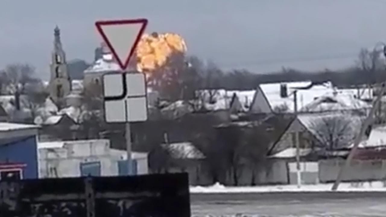 Video posted on the Telegram messaging app by Baza, a channel linked to Russian security services, and verified by Reuters, showed a large aircraft falling towards the ground near the village of Yablonovo in the Belgorod region and exploding in a vast fireball.