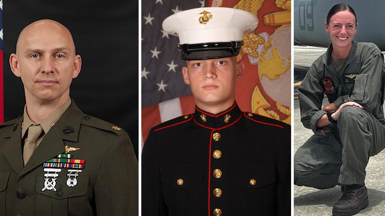 Captain Eleanor LeBeau, 29, Corporal Spencer Collart, 21, and Major Tobin Lewis, 37, died while taking part in a military exercise on Sunday when their MV-22 Osprey aircraft plunged on remote Melville Island, 80km north of Darwin.