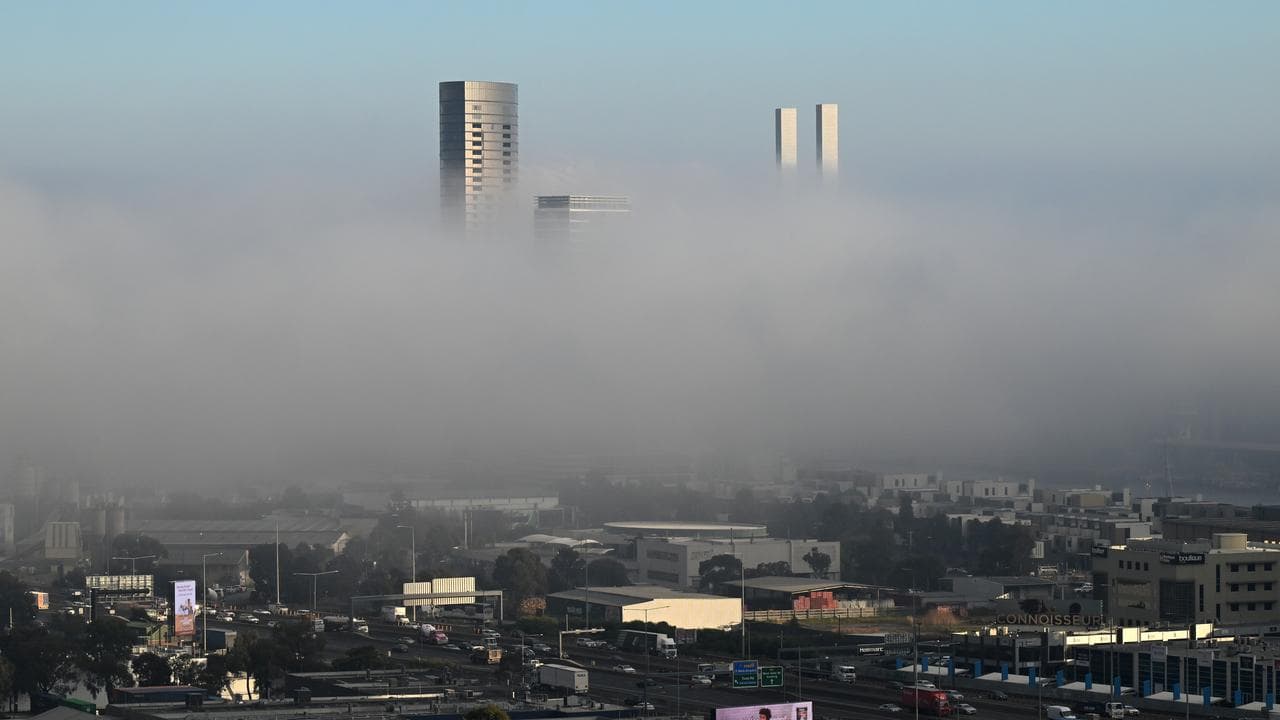 Thick fog blanketed parts of Victoria, including Melbourne, where temperatures dropped to -2.1C in Coldstream in the city's east.
