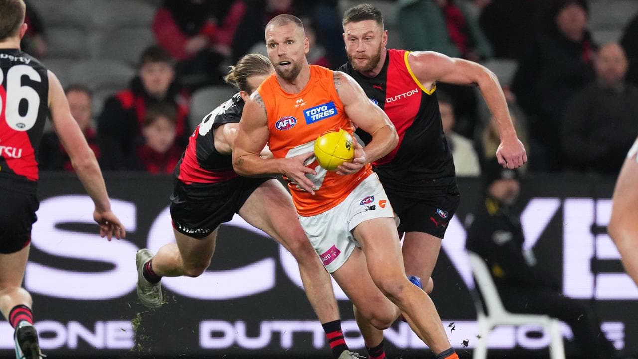 The Giants ruckman laid a fearsome tackle on Sam Durham in the third quarter that left the Bombers midfielder dazed.