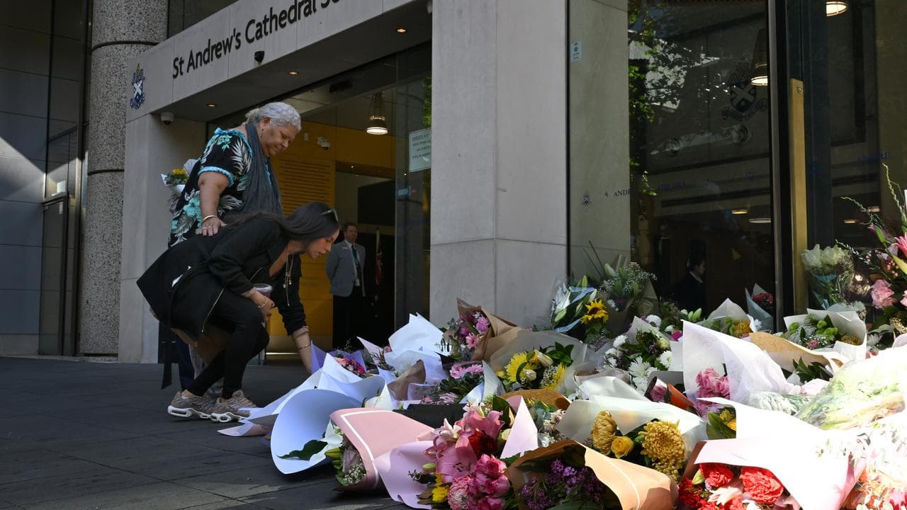 A large collection of floral tributes piled up outside St Andrew's Cathedral School in Sydney's city centre on Monday morning as students, teachers and parents arrived.