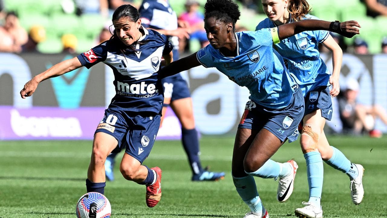 Sydney’s advantage lasted just 13 minutes, when a ball was swung into the Sky Blues’ box and goalkeeper Jada Whyman clattered into Victory forward McKenzie Weinert to give away a penalty.