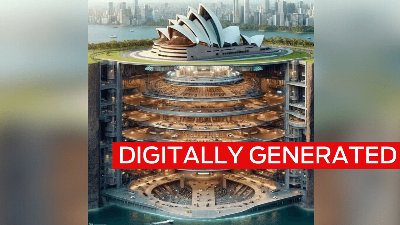 AAP FACTCHECK – A viral picture of the Sydney Opera House showing a sprawling subterranean complex extending deep beneath is a digitally generated fake.