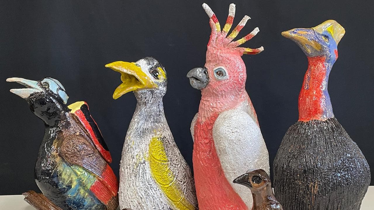 Cramond has spent years adding to her collection of bird sculptures in the back room of her house in Dubbo, in western NSW, where she also paints and sketches.