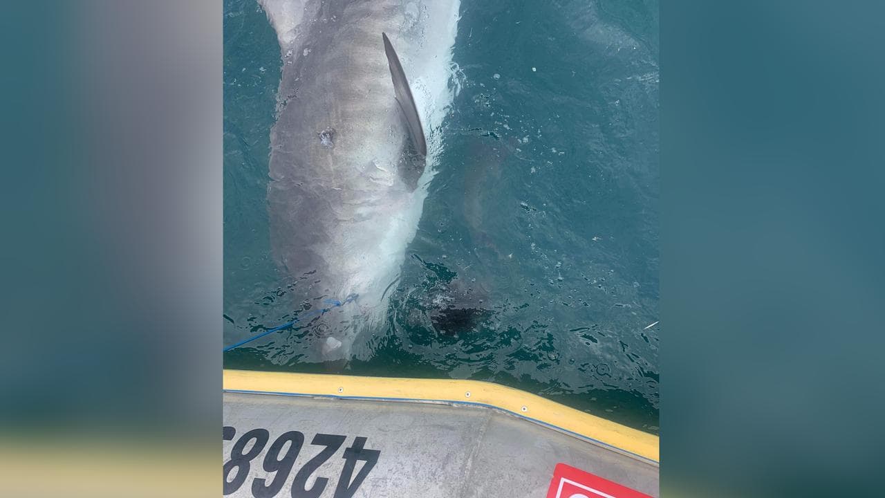 The tiger shark quickly recovered after clearing its throat and was fitted with an acoustic tracker before being released unharmed.