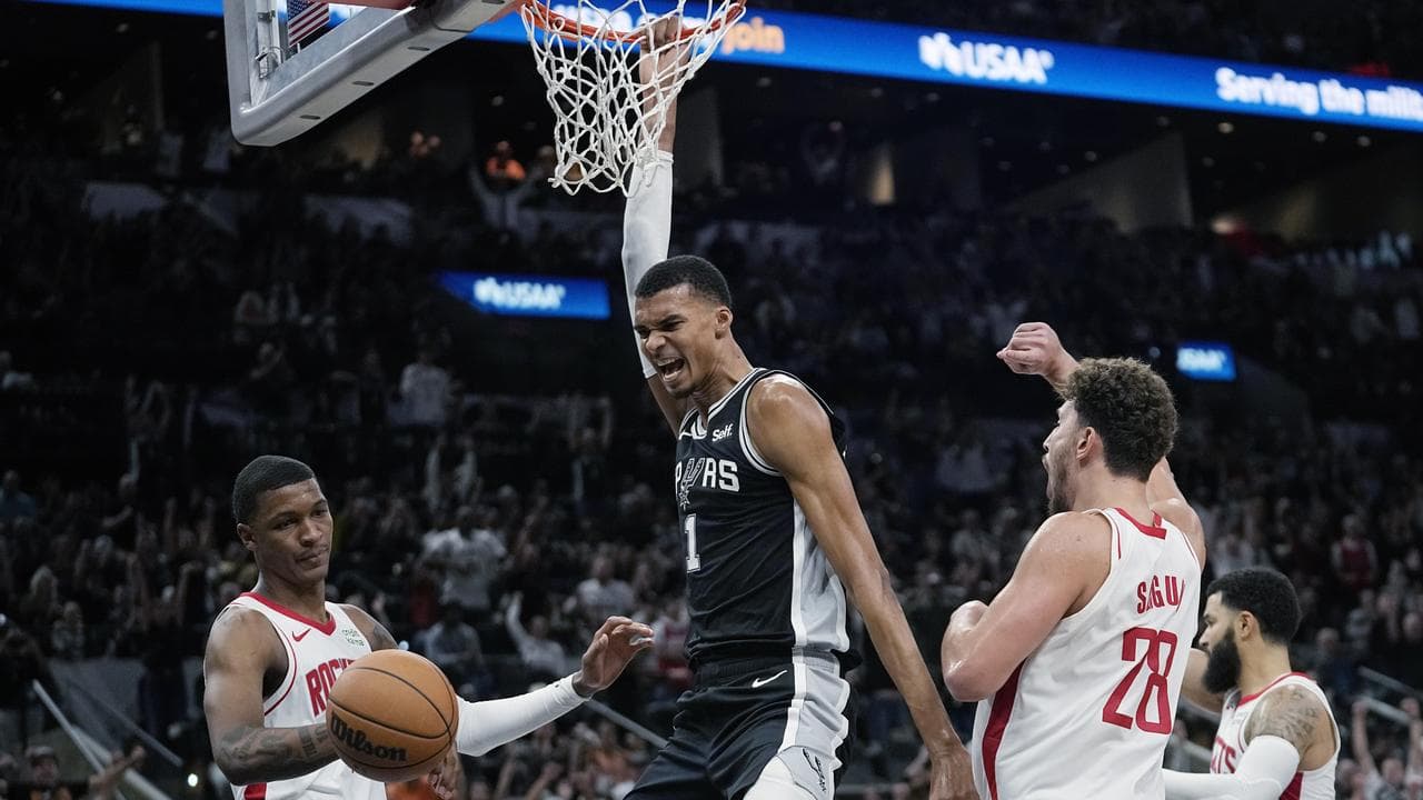Number one draft pick Victor Wembanyama sent the San Antonio Spurs to overtime against the Houston Rockets and then confirmed his first NBA double-double in a 126-122 victory.