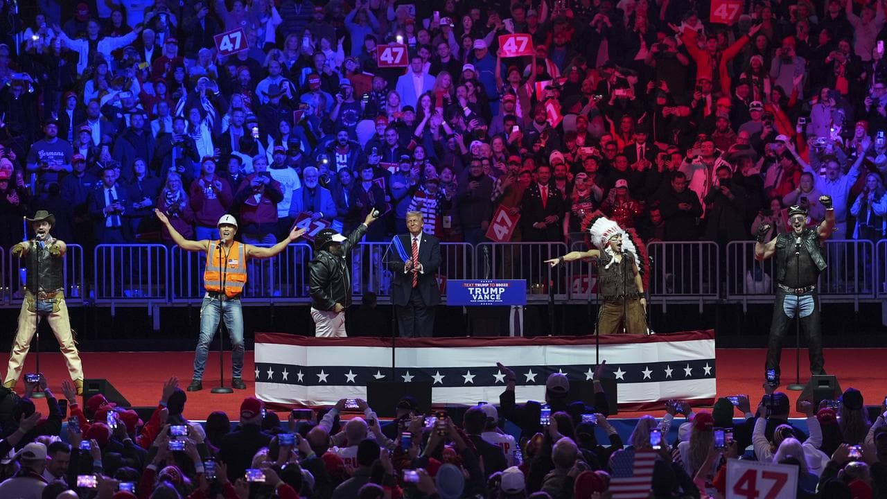 After he finished speaking, the Village People took the stage and the president-elect sang — and even briefly danced — along to YMCA, the unofficial anthem of his campaign.