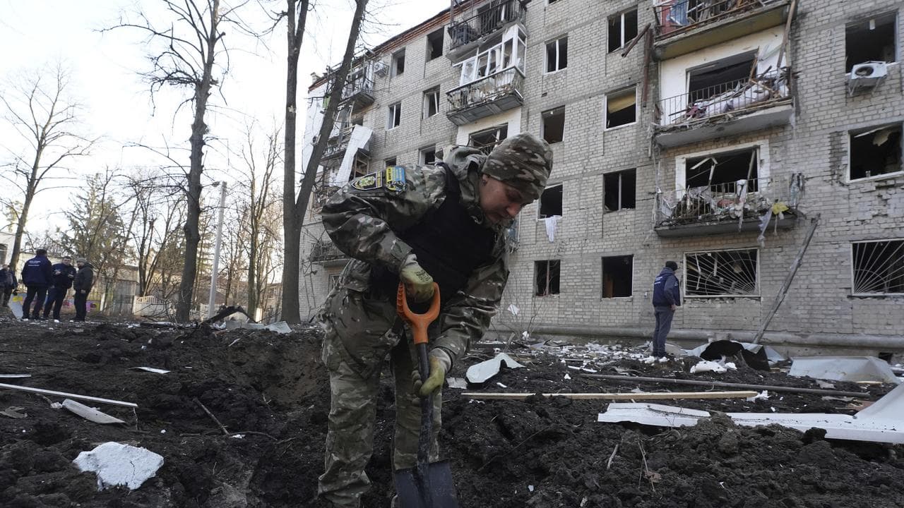 Ukrainian President Volodymyr Zelenskiy condemned the Wednesday attack as "Russian terror" and Volodymyr Tymoshko, head of the Kharkiv regional police, said Moscow might have used a new type of guided bomb, which he described as the UMPB D-30.