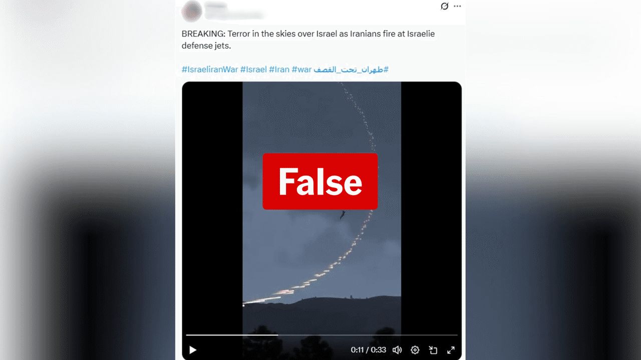 “BREAKING: Terror in the skies over Israel as Iranians fire at Israelie [sic] defense jets,” the caption says.