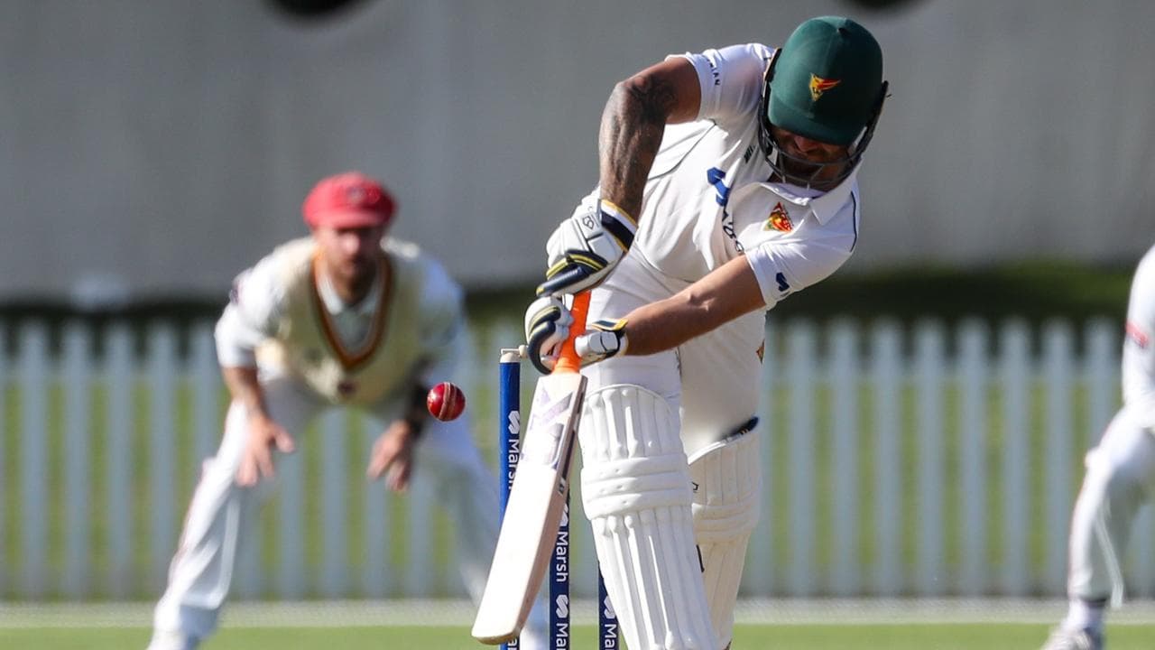 Tasmania's Jake Weatherald in unbeaten on 185 after day one of the Shield clash with Queensland. (Matt Turner/AAP PHOTOS)