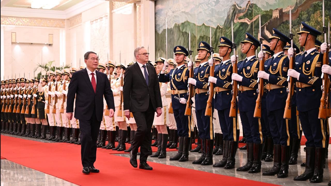 Mr Albanese arrived back at Beijing's Great Hall of the People on Tuesday for a ceremonial welcome by Chinese Premier Li Qiang and a working lunch.