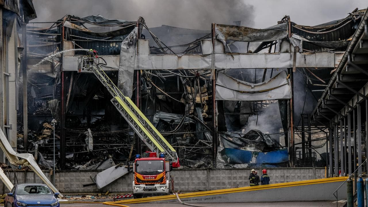 A fire broke out in a non-residential building in one location, while debris from intercepted missiles fell in an open area at another site, damaging windows in nearby buildings, Ukraine’s State Emergency Service wrote on the message app Telegram.